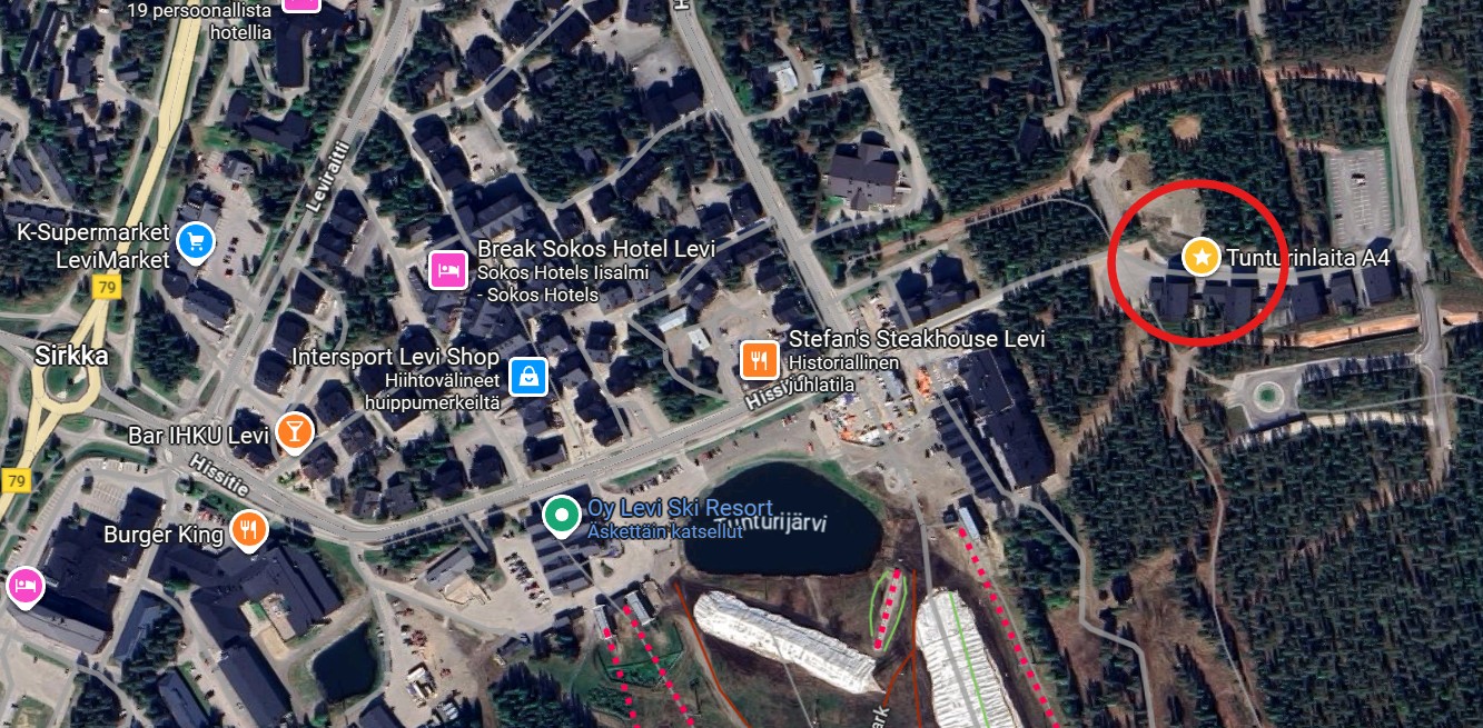 Within walking distance, you'll find two good grocery stores, cafés, several restaurants, a spa, hairdressers, beauty salons, a pharmacy, sports equipment shops and rentals, a doctor, Alko, bars, nightclubs, and more. During the high season, it is recommended to make a table reservation in advance. Levi offers an excellent range of services.